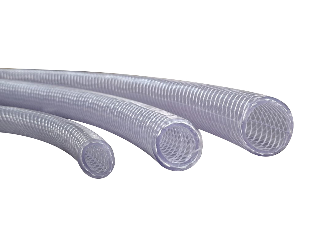 Composto: Tubo interno de PVC flexível transparente, reforçada com trança de poliéster e cobertura de PVC flexível transparente.